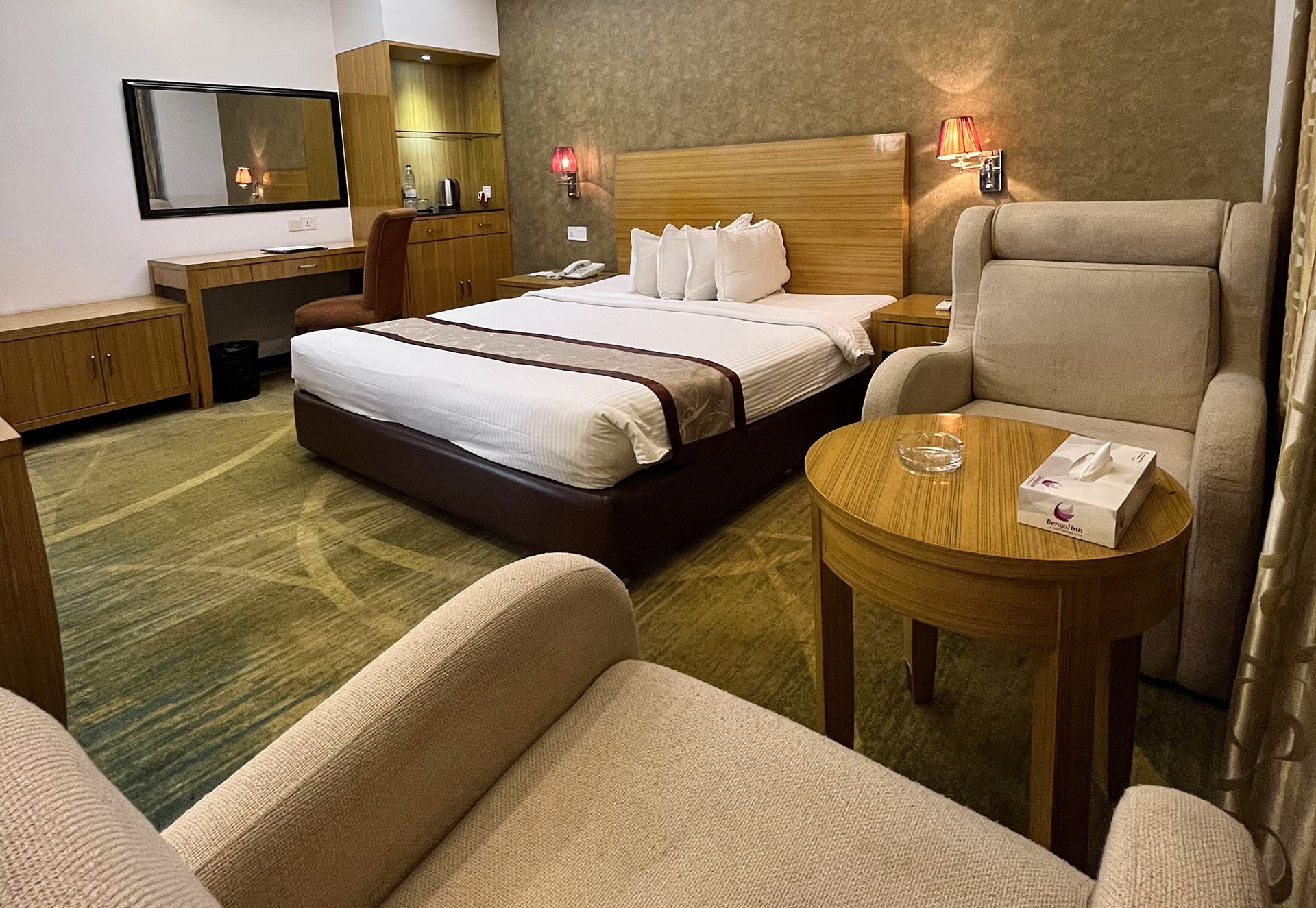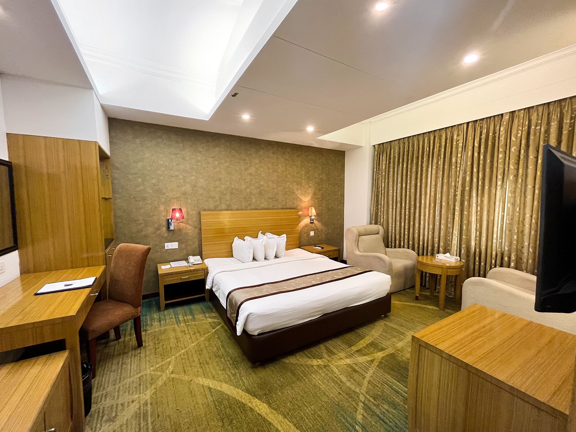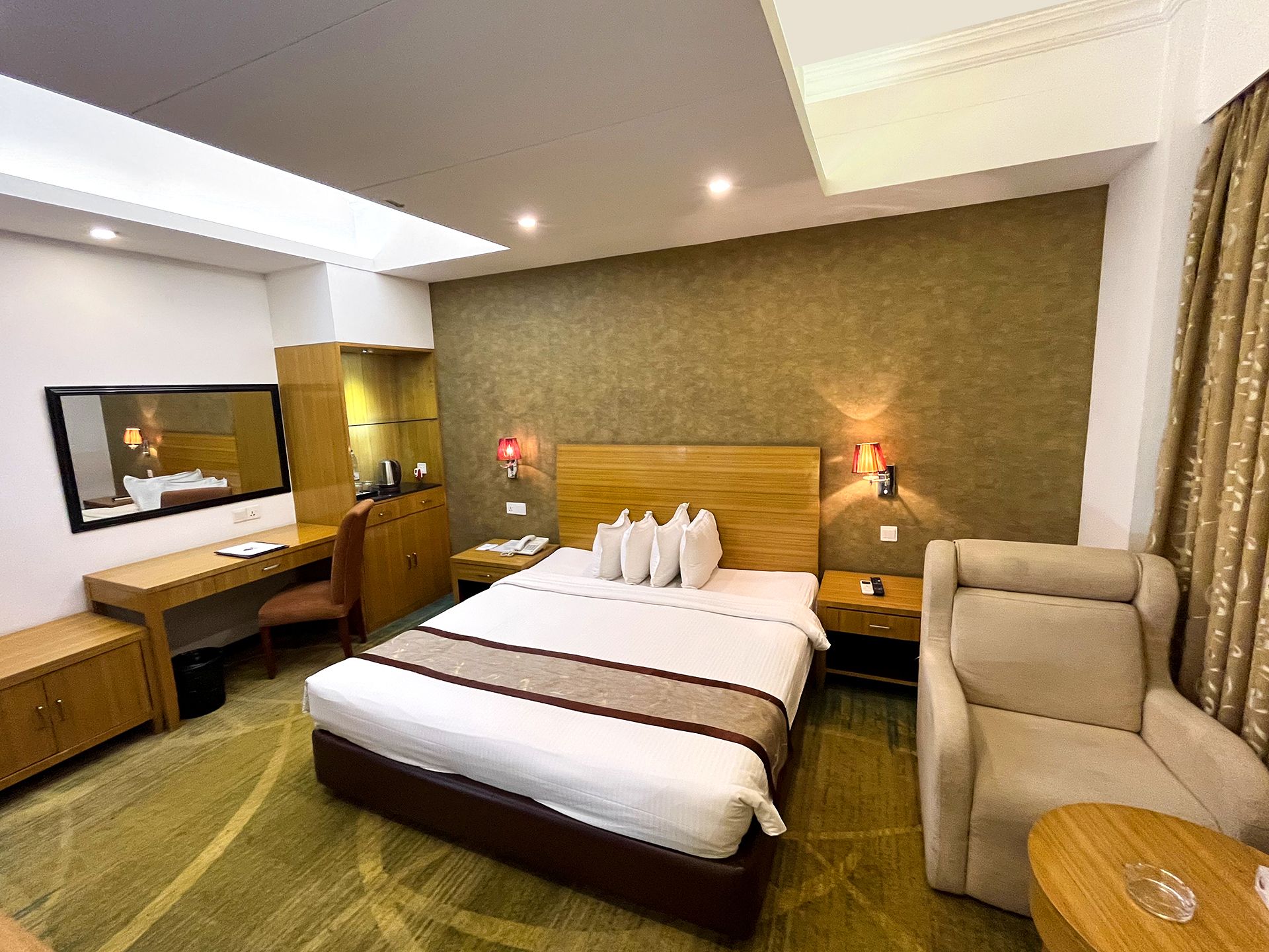 The guest Rooms are well equipped with all the modern amenities you may look for your satisfaction. All guest rooms are Air-conditioned with satellite TV, Mini Refrigerator, Electronic safe box, Hair Dryer, IDD Telephone, Wi-Fi & Broadband internet facilities and 24 hours Room Service is available for a quiet stay